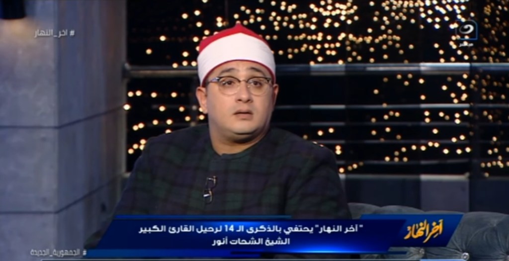 وأضاف الشيخ محمود الشحات أنور، أنه في يوم خلال هذا الشهر وقبل أن ينام جلس على سريره وفتح المصحف وقرأ سوة يوسف وهود ويونس، ثم أغلق المصحف ونام، وخلال هذه الليلة جاءه رسول في المنام وقال له حسب قوله “هيا بنا يا شيخ محمود لنصعد إلى السماء، وأضاف أنه صعد للسماء السابعة ورأى النجوم من تحت قدمه.