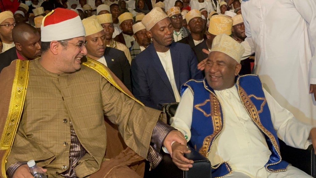 ورئيس دولة جزر القمر في مقابلتين رسميتين مع افتتاح مسجد رئاسة جمهورية جزر القمر مع استقبال رسمي من وزارة العدل والشئون الدينية بدودة جزر القمر ثم وداع رسمي لفضيلته بعد رحلة قصيرة دامت خمسة أيام.